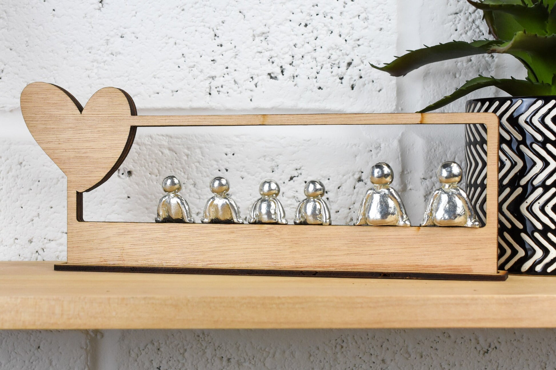 Our little family frame comes with 1 or 2 adults and your choice of 0 to 4 children sat in an engrave wooden frame 'Our Little Family'.