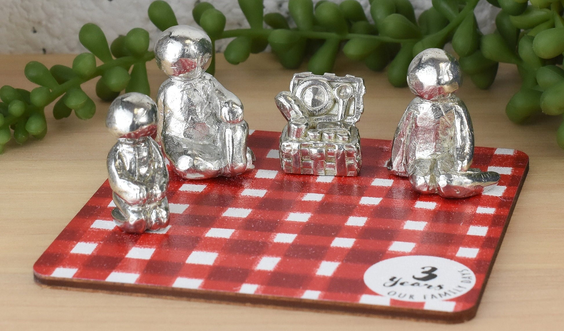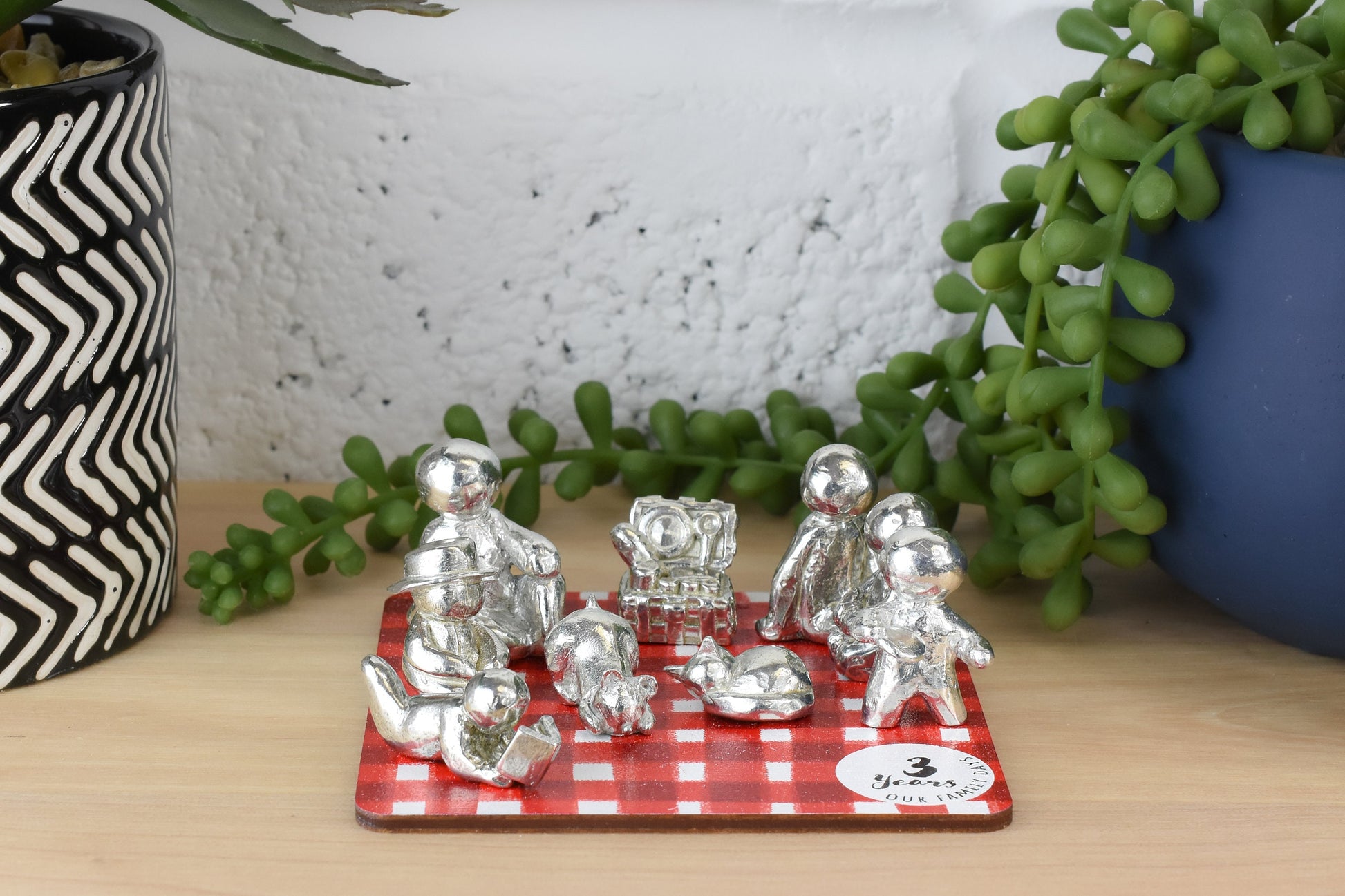 Part of our brand new our family days collection this product features a lovely picnic scene for those family picnics you have had. Each set comes with two parents and the chance to choose how many children you would like. Features the words 3 Year Our Family Days making it the perfect anniversary or 3rd anniversary gift idea.